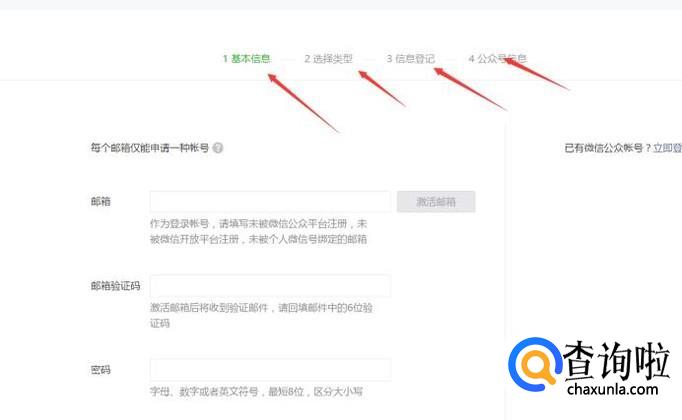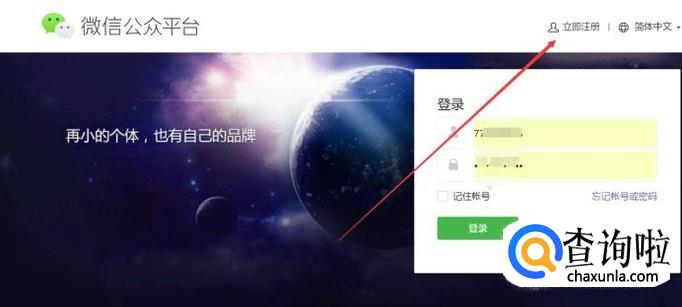 如果你有公众号的账号可以直接登录,如果没有我们点击立即注册。