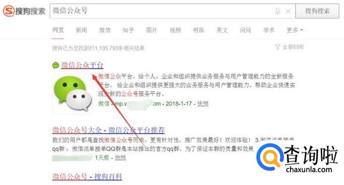 在搜出的结果中,找到微信公众号的官网,点击进入。