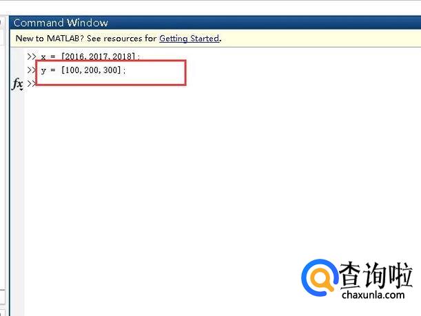 首先打开matlab软件声明一个X坐标轴的数据,如下图所示