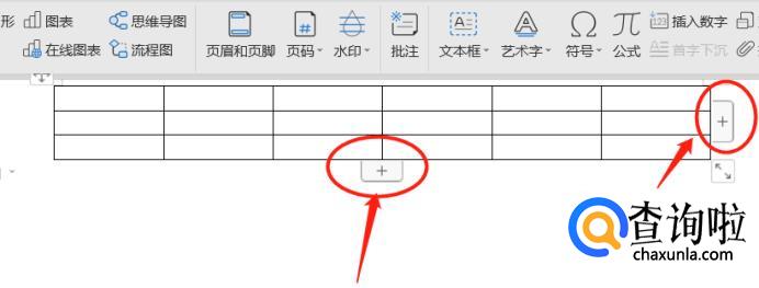 将光标放在表格上,会看见列的最右方和行的最下方有个“+”号,点击之后就可以增加行或者列了。