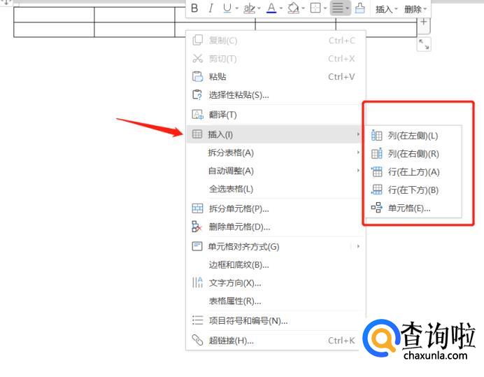 光标放在表格上,点击鼠标右键,在弹出的对话框中选择“插入”,就可以选择插入的行和列了。