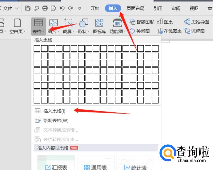 点击“插入”-“表格”。