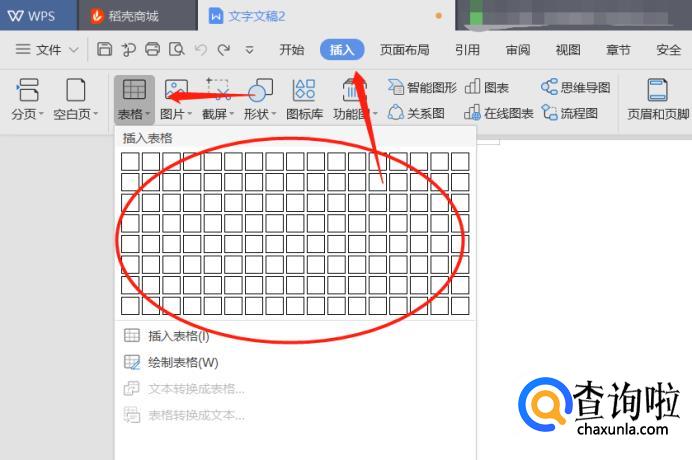 通过设置窗口来插入表格。点击“插入”-“表格”-“插入表格”。