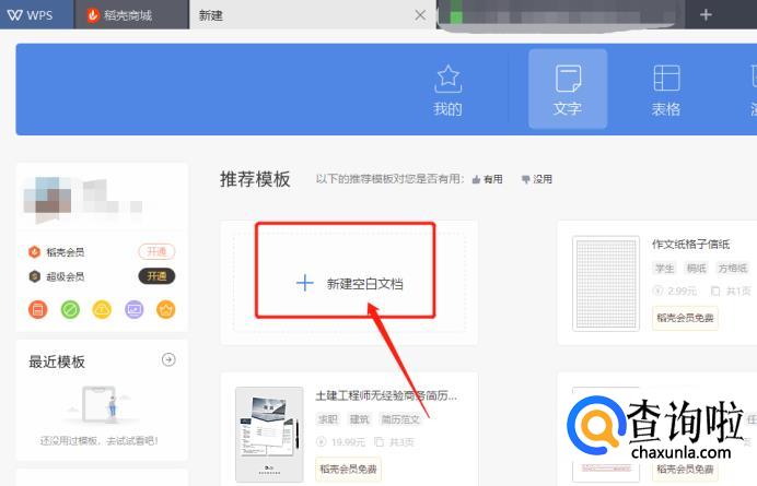 打开word,新建一张空白文档。