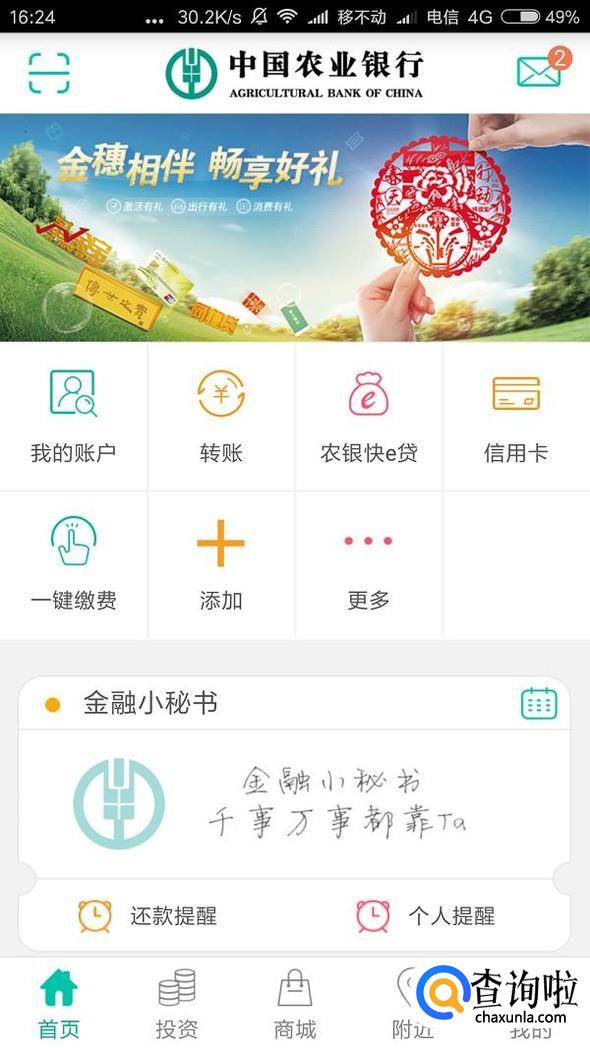 还有一种就是我们在我们的手机上下载一个叫“中国农业银行”的APP,然后我们绑定上我们自己的银行卡。