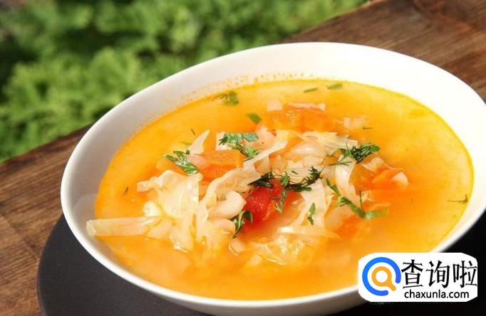 白菜汤是俄罗斯当地传统的基础菜汤,在吃午餐的时候是必不可少的,主要食材就是白菜,加上胡萝卜以及洋葱和香菜熬制而成的素菜汤,营养价值很高,在春夏季节的时候当地人还会加点儿酸梅或者是荨麻。