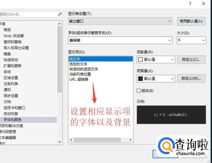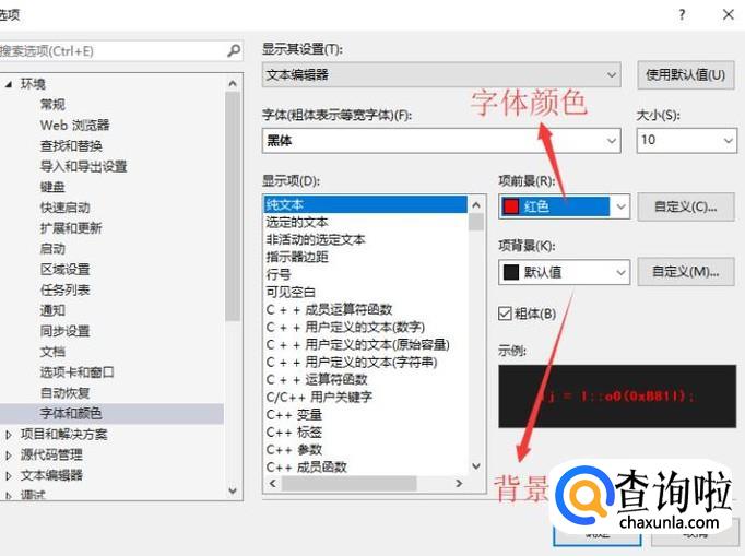 显示项右侧的项前景表示的是字体的颜色,项背景代表的是字体的背景颜色,如下图所示