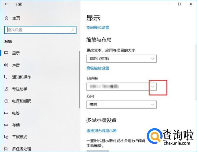 弹出的界面,我们点击分辨率下方的下拉箭头;