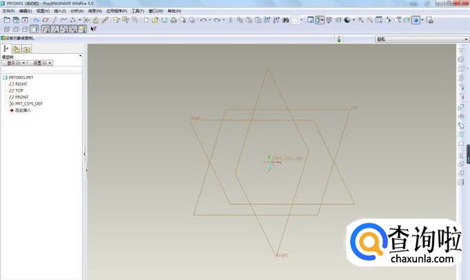 打开Pro/E软件,新建一个实体零件,模式默认为缺省。