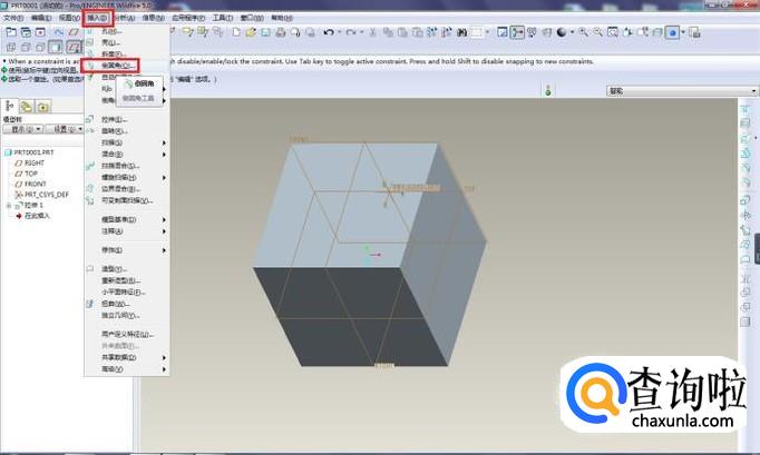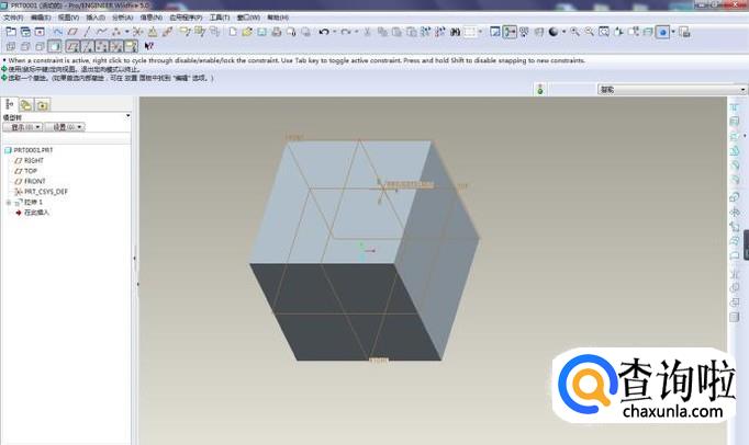 通过拉伸操作,造一个正方体作为演示所用。