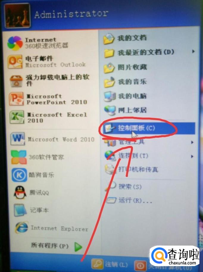 点击左下角的“开始”,选择控制面板。
