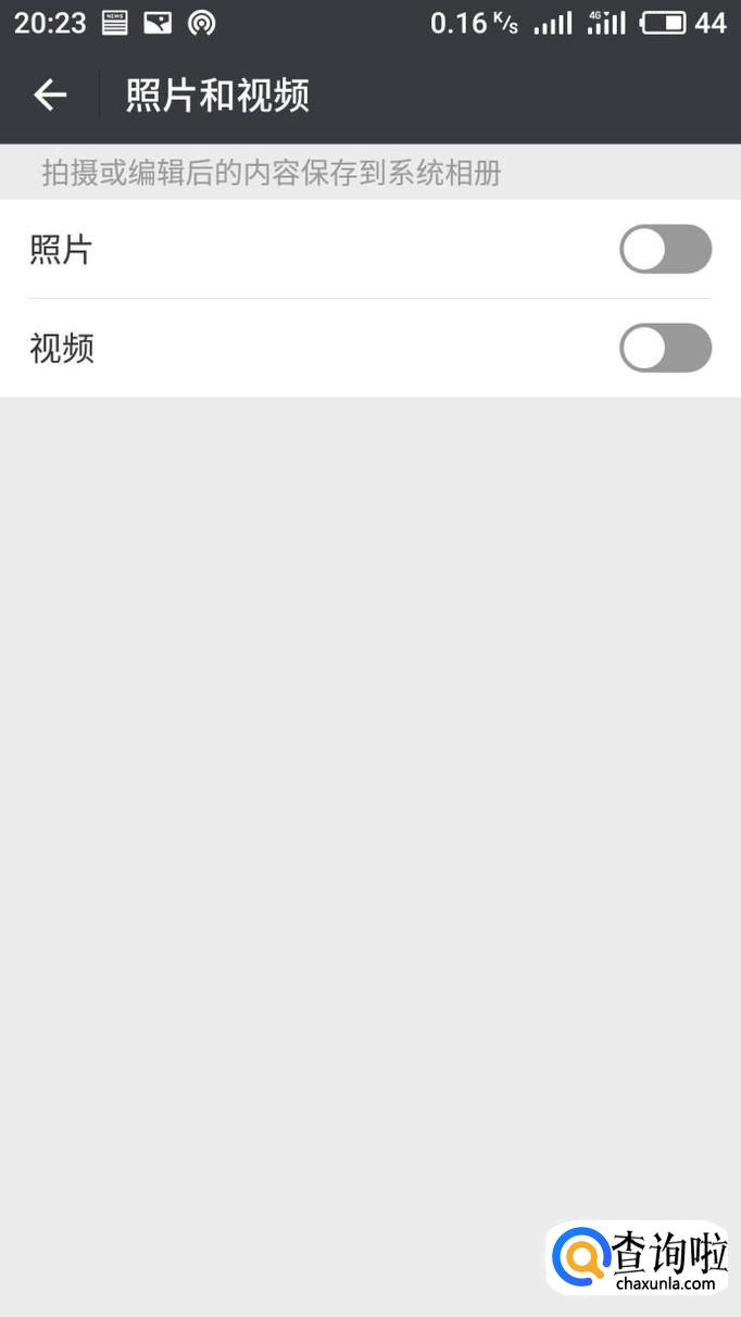 点击照片和视频按钮,然后进入主页,绿色为开启,点击关闭就不会保存啦。