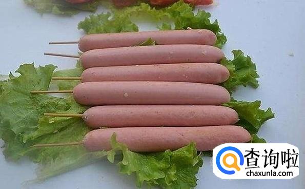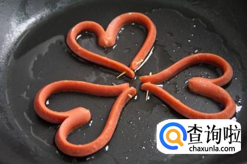 首先我们需要把火腿肠的外皮剥掉,然后把火腿肠从中间撕开,不要都切断,然后使用牙签固定成心的形状。