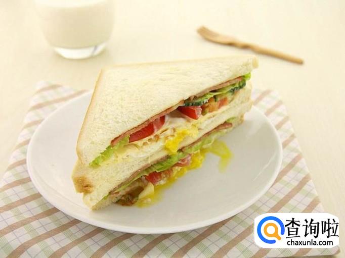 等鸡蛋熟了,我们就可以把鸡蛋火腿、生菜夹在吐司面包片里面了,根据自己的口味选择放番茄酱还是沙拉酱。