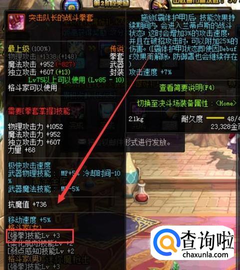 散打的核心BUFF叫做强拳,首先我们来看异界六件套,我们选择邪灵之息套装。部位是肩甲,腰带,鞋子,手镯,项链,魔法石。