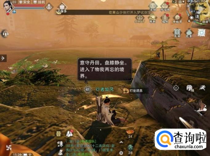 这样角色就显示打坐这个状态了,如下图所示。