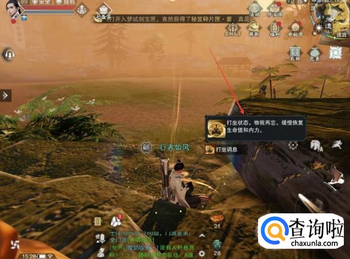 游戏中角色通过打坐可以恢复生命值和内力,只是速度有点缓慢而已。