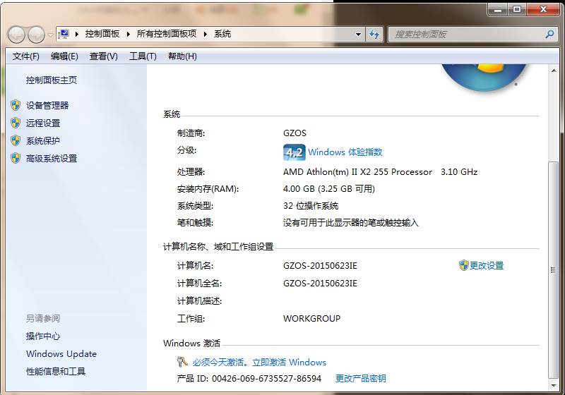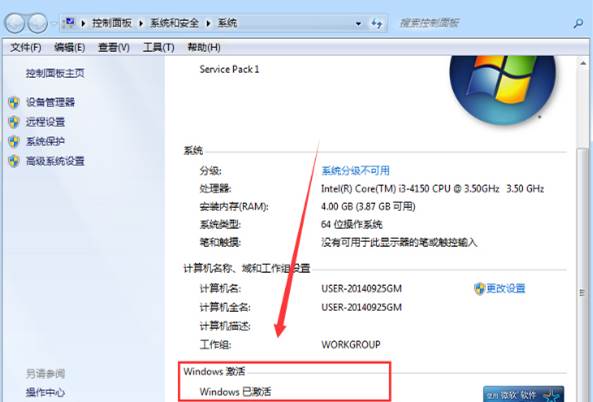 7、在计算机属性界面,您也将看到Windows7已经激活。