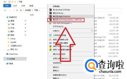 下载完之后点击解压,在文件中找到下载好的资源,把下载好文件解压。