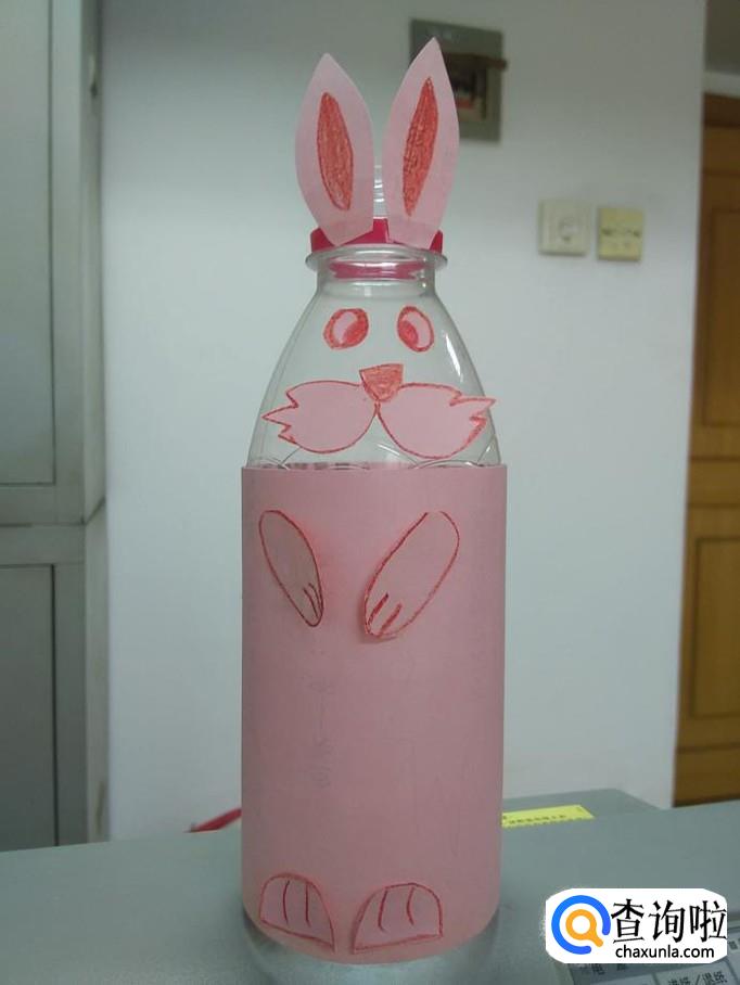 用塑料瓶当作小兔子的身体,用彩纸剪出耳朵、眼睛、嘴、胡子、四肢,粘在瓶子上,做一只小兔子,非常可爱,下面就用塑料瓶做手工小兔子。