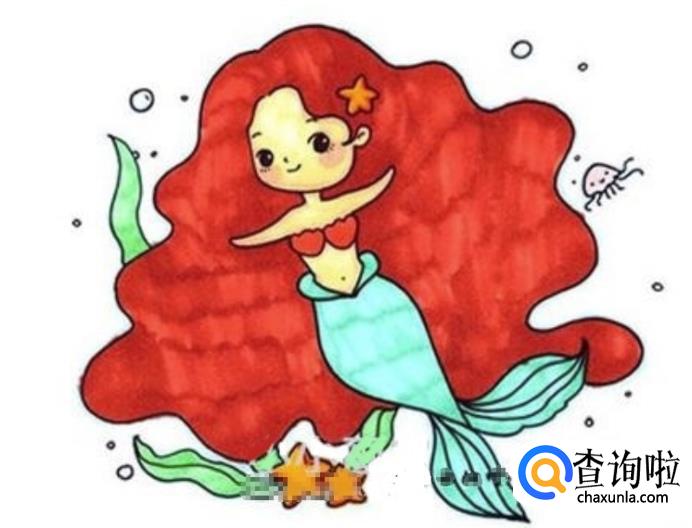 最后我们给美人鱼涂上颜色,漂亮的美人鱼就画好了。