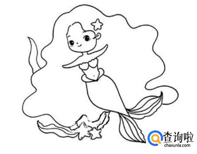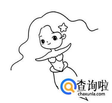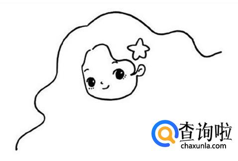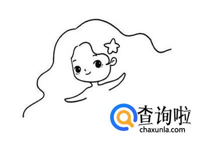 再画出美人鱼秀丽的五官,给美人鱼加上一个漂亮的星星发卡。