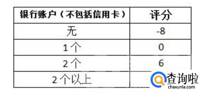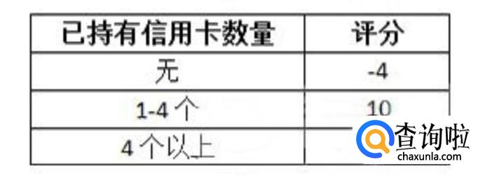 然后是银行账户的个数,分为0个、1个、2个和2个以上,还有已经持有信用卡的数量,分为0个、1–4个、4个以上,具体评分标准见下图。