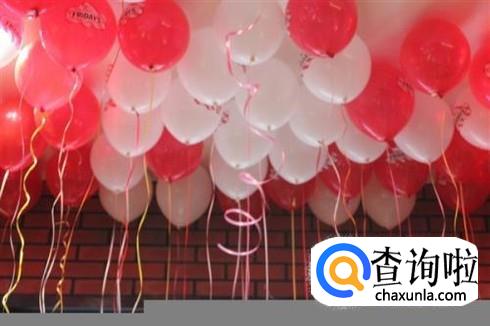 我们也可以把气球里面都充满氢气,然后在尾端系上一个丝带,这样子就可以全部飘到屋顶,也是非常好看的。