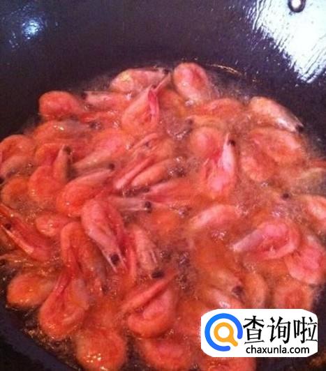 油锅放适量油,油热后放入洗好的虾,先把虾在油锅中炸一下,炸至虾变成红色,炸好后捞出备用。