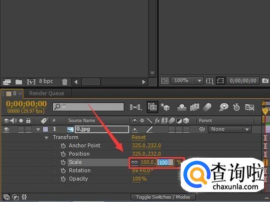 点击transform选项,在其子级菜单里找到scale选项,在scale的后面找到修改数值选项,如图所示: