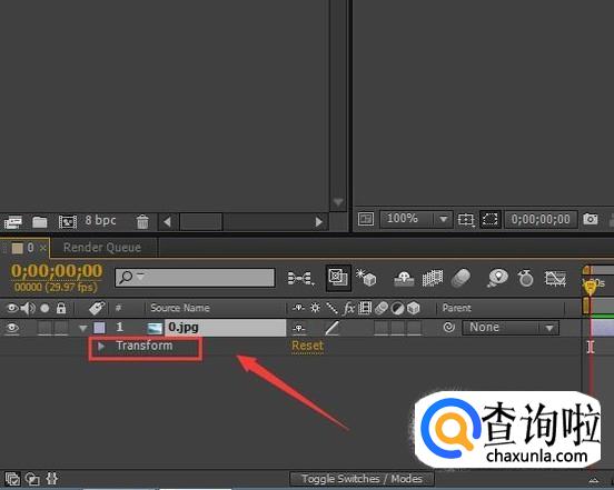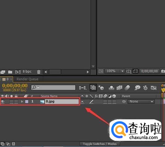 打开图片之后,我们使用鼠标左键将其拖放到合成窗口内,创建一个新的合成,如图所示: