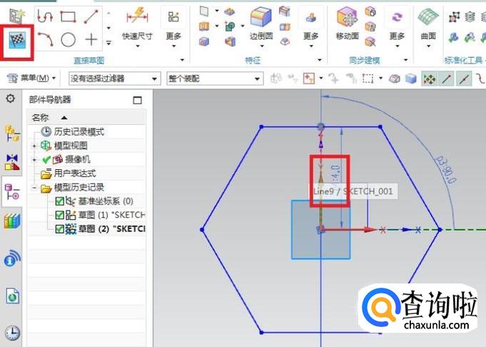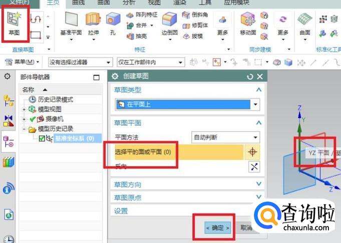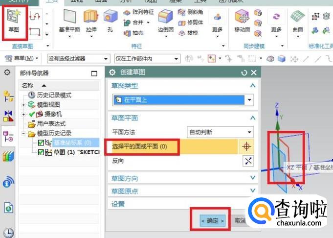 继续点击主页工具栏中的“草图”图标,创建第二个草图,
