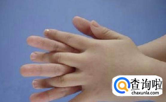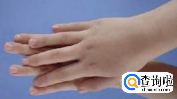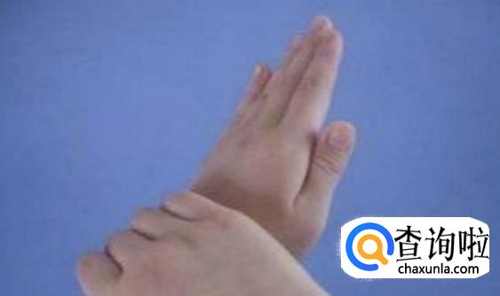 双手五指并拢,然后左右手交换揉搓(左手心覆盖右手背揉搓,再换右手心覆盖左手背揉搓)。