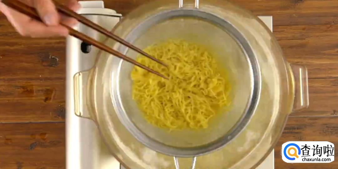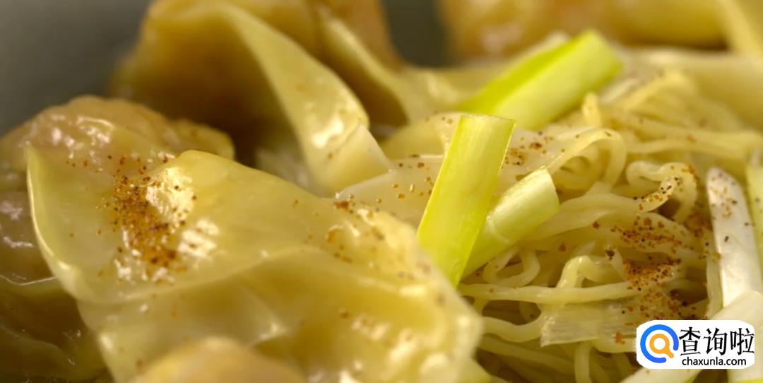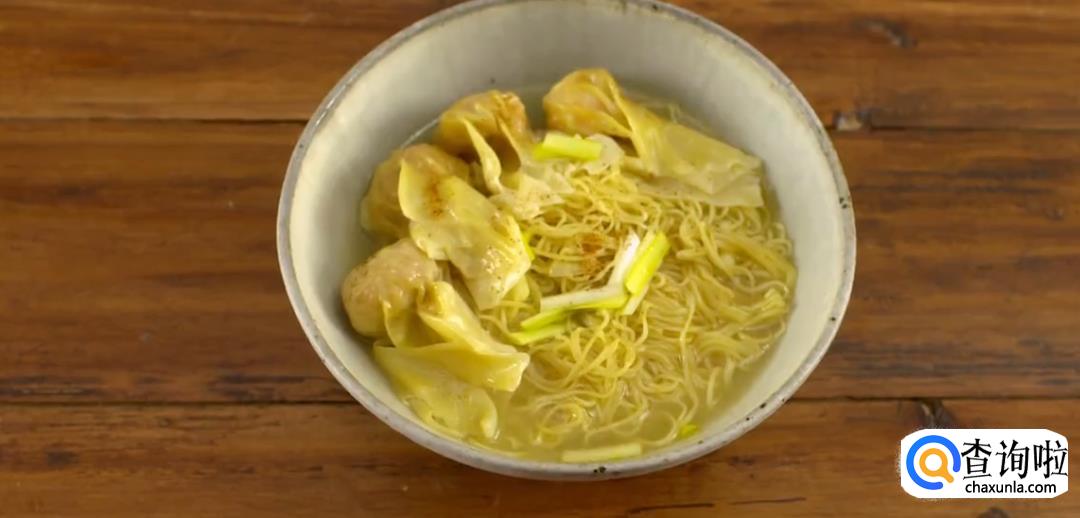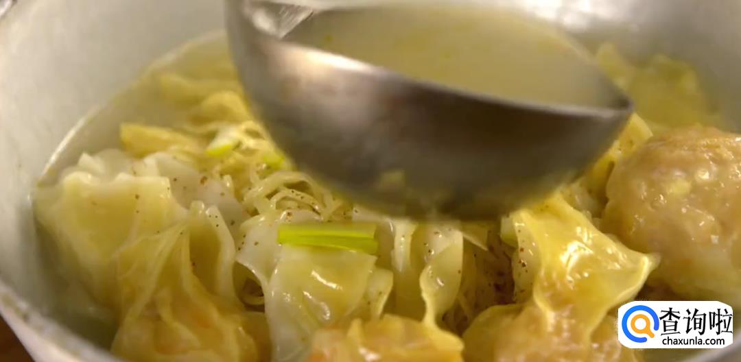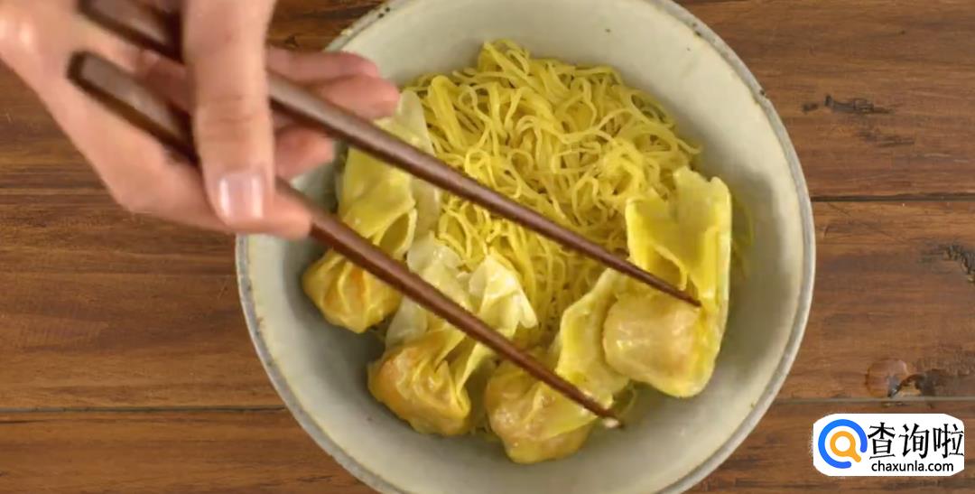 淋上煮好的汤汁。汤汁差不多刚好没过云吞面就可以了。