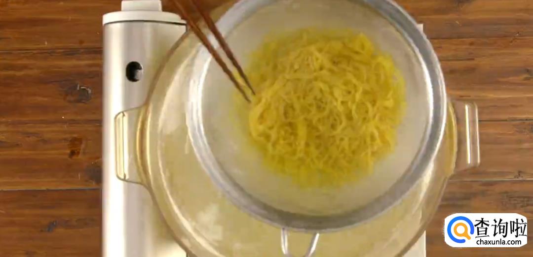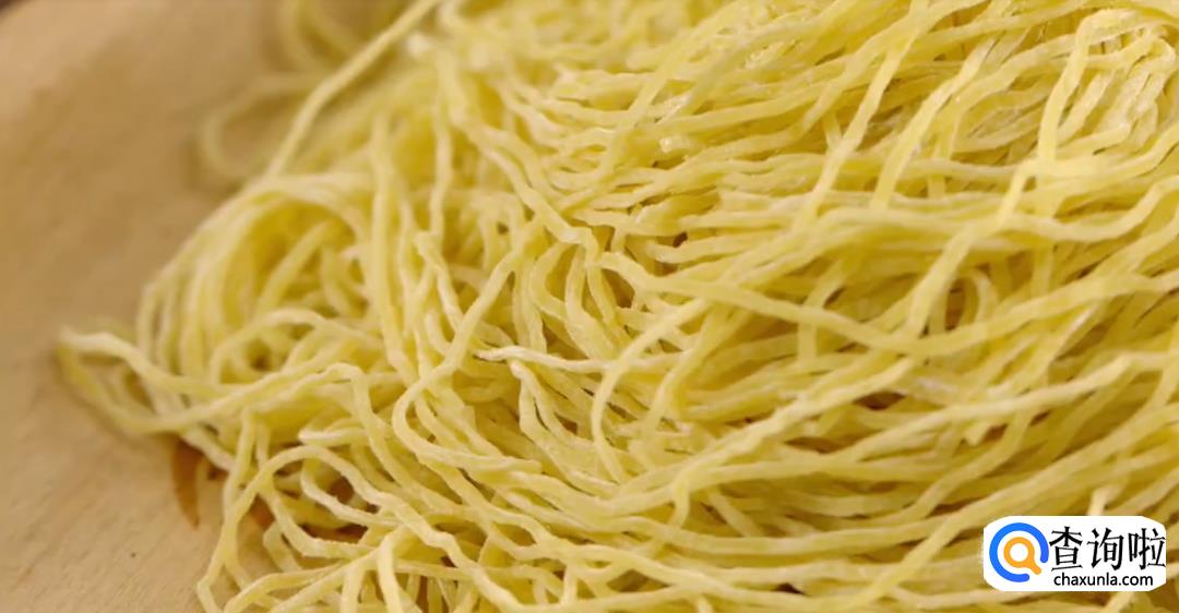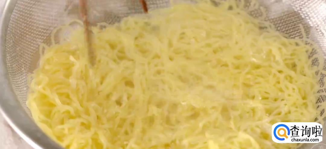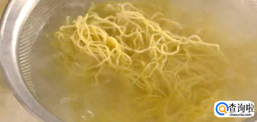 准备好广东特有的碱水银丝面。将面团抖散下入锅中。煮到六七分熟的时候捞出来,在冷水里过一下,然后再次下沸水煮十来秒就可以了。
