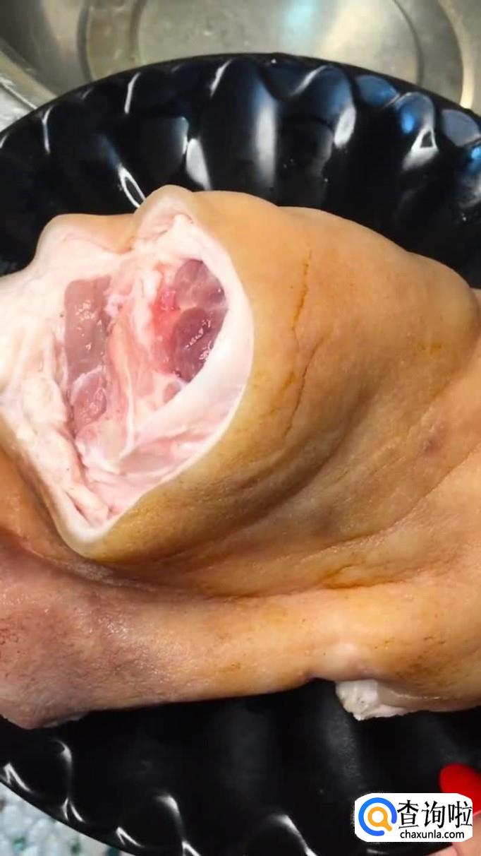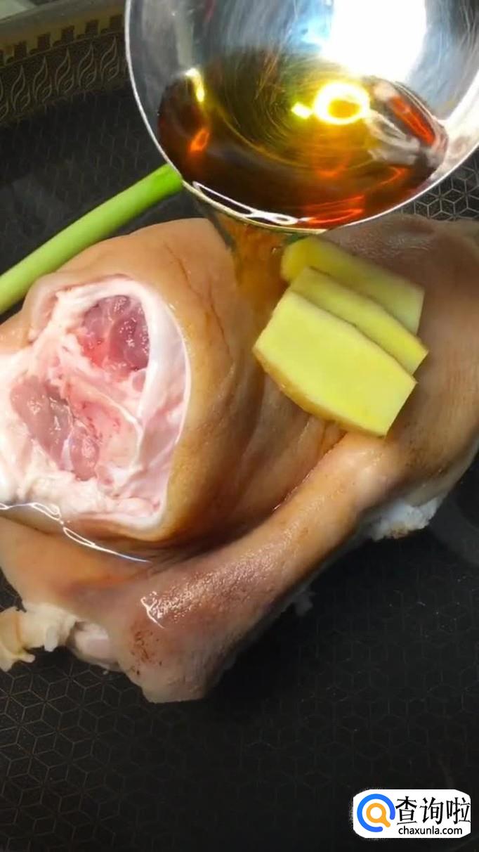 首先将猪肘子用火烧去表皮上的毛发并用清水清理干净,如下图所示。小贴士:如果你觉得处理猪肘子比较麻烦,可以让卖肉的小贩帮你处理一下也是可以的。