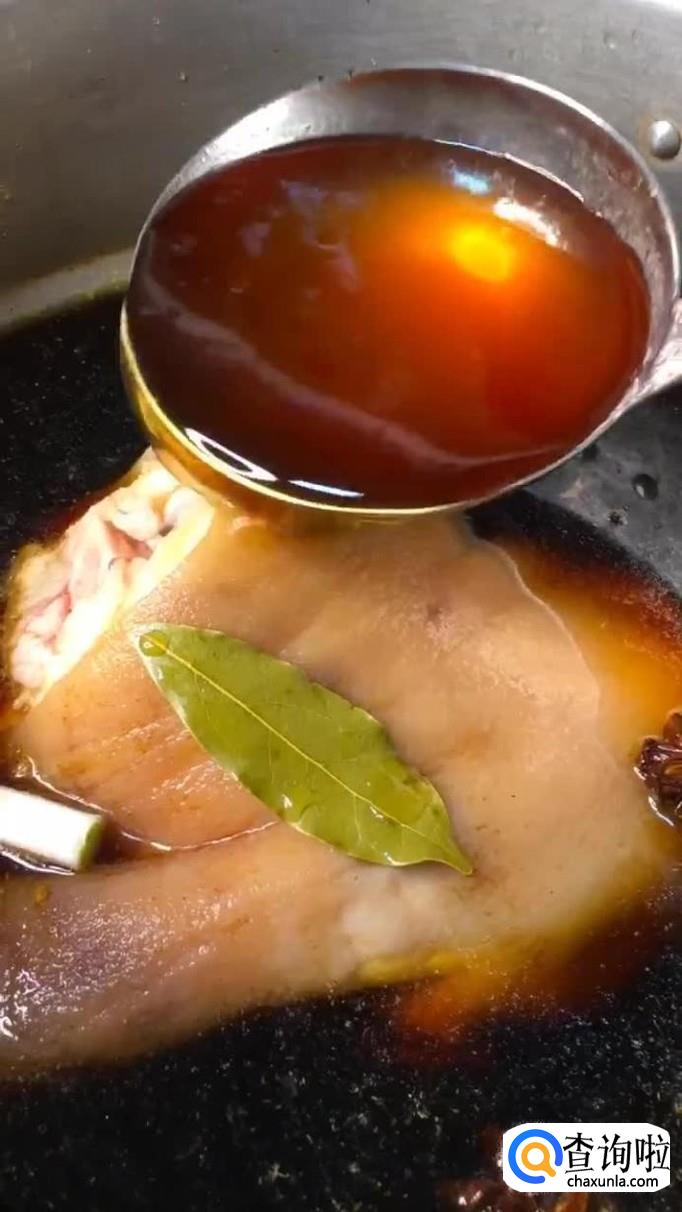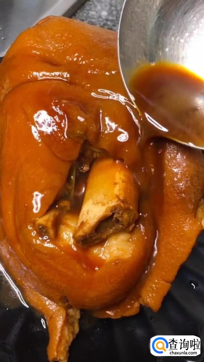 肘子卤好后,把锅中剩余汤汁浇淋在肘子上面就可以了。