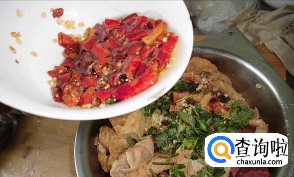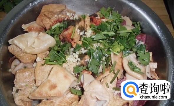 根据个人口味,加入适量香菜和辣椒,美味的卤煮火烧就完成了!