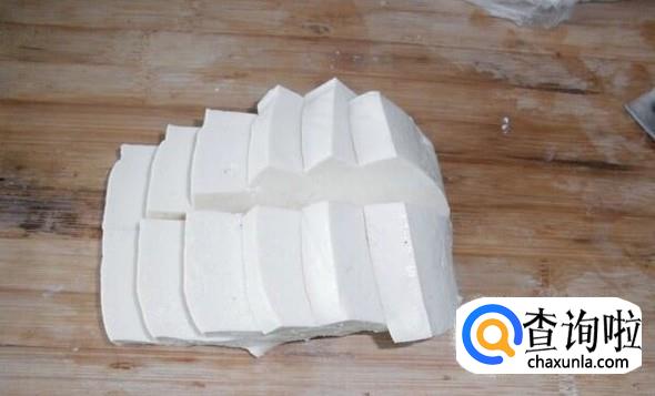 备好材料,将佐料切好以备使用,把豆腐切块。
