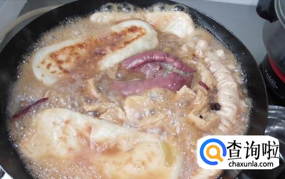 把豆腐炸透,入味。将各种主食食材放入锅内煮熟。