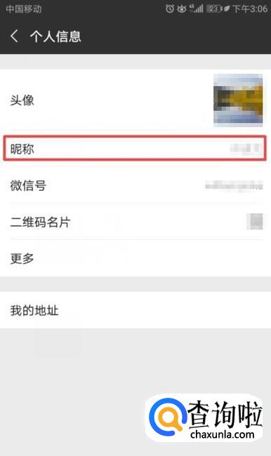 进入微信后,我们点击我,然后我们点击昵称的地方,如图所示;