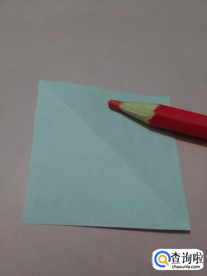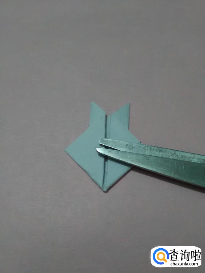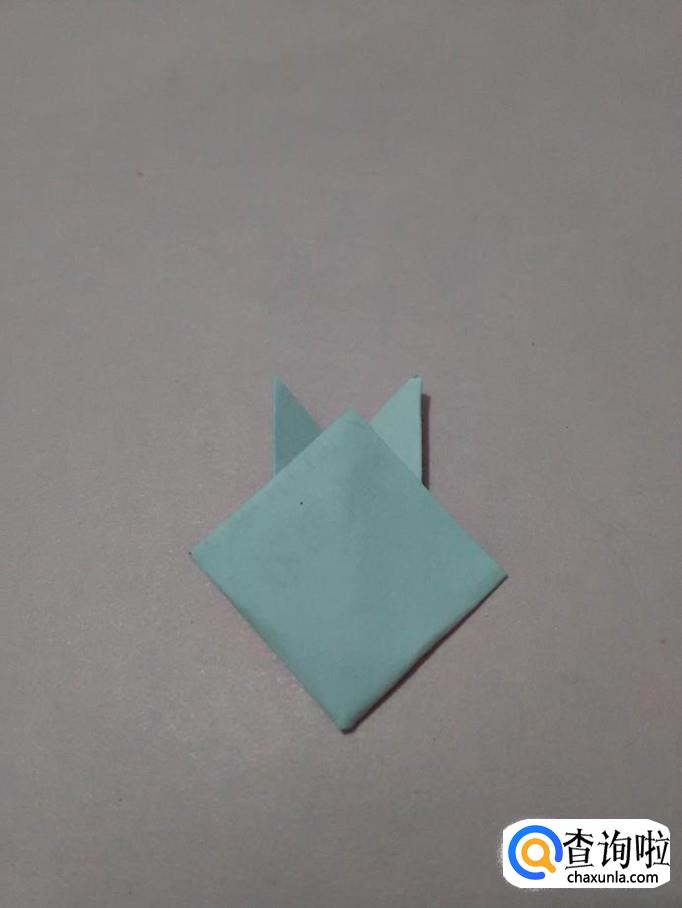 将两侧的角向上折,露出来的两个角,就是两只耳朵。