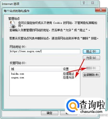 这里是为了没有错误提示,已经允许的站点可以不做处理,阻止的站点可以删除,这个设置相对安全性高一些,推荐使用;