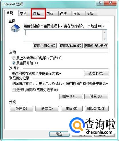刚打开时显示的是“常规”标签页,我们需要设置的是“隐私”,点击隐私标签页;
