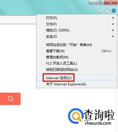 打开Windows自带的浏览器Internet Explorer,点击右上角的设置按钮,找到“Internet 选项”,打开;