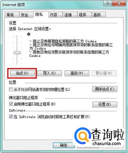 或者不修改上面的两项设置,点击“站点”,在弹出的窗口中可对每个访问的站点进行设置;