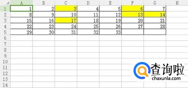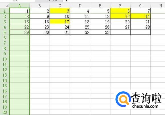 选择第一行和第一列的交叉点A1单元格,如下图所示。