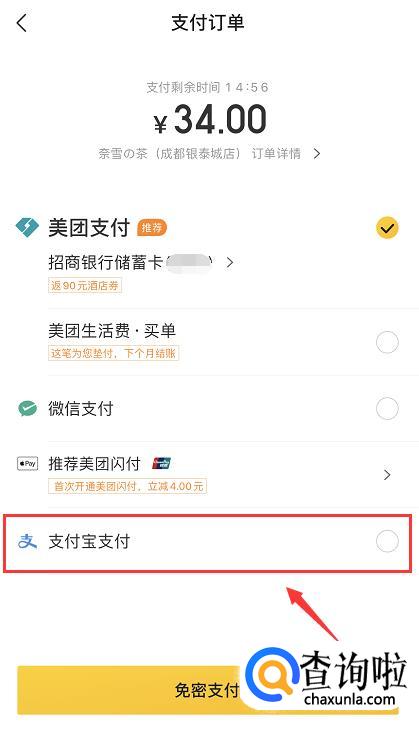 然后,在支付订单页面,就可以看到支付宝的选项了。