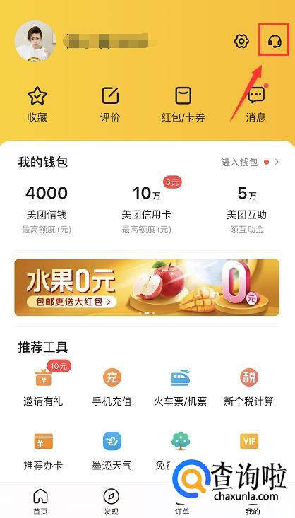 首先,我们打开美团app,在下方的导航栏中点击【我的】,进入我的页面之后,在右上角可以看到一个耳机的图标,我们点击一下。