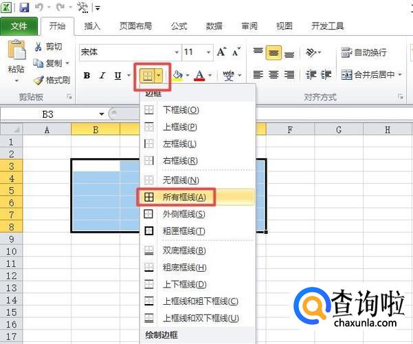 之后我们点击工具栏中的边框边上的下拉箭头,弹出的界面,我们点击所有边框;